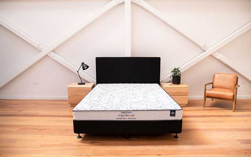 This med-firm, entry- to mid-level bed set is a great option for a spare room, a rental property or your student lifestyle. It features a thick foam comfort layer for added comfort. It is single-sided and has a platform base. Contour-Flex advanced head-to-toe Helicoil Long Lace Spring Unit to help prevent roll together. Soft Foam comfort layer. Soft knit ticking. Mattress depth: 200mm