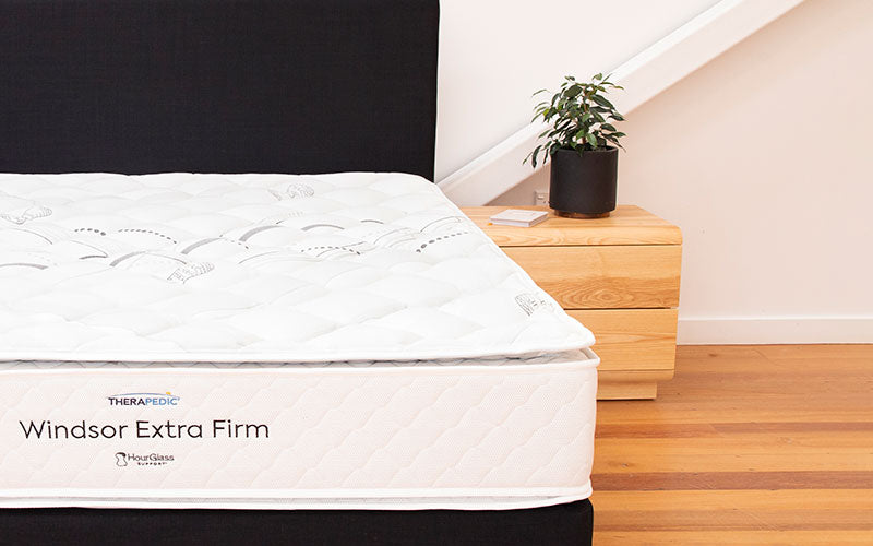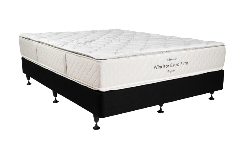 This medium-firm mattress features the Innergy alternating coil design that reduces motion transfer while improving lumbar support. This exclusive coil design eliminates sleep-disturbing motion transfer & allows each spring to respond individually to create an exceptionally supportive & comfortable sleep surface Patented HourGlass Back Support by Therapedic provides up to 18% more support to the lumbar region TheraFoam Encasement – Improves stability while increasing the usable sleep surface, eliminating roll together and increased edge support Wool blend pillow-top with foam comfort layers to provide additional pressure relief Flip this two-sided mattress for long-lasting comfort & support Mattress depth: 335mm Dimensions: This is a double-sided mattress and you can alternate between flipping and rotating it. After you first purchase this mattress, it should be should be flipped or rotated, on average, every fortnight. Once you’ve owned the mattress for a few months, it should be flipped or rotated every 3-6 months. This can help maintain more settlement between mattress layers, and will also help you maintain the conditions of your mattress warranty. Pictured on a black Upholstered Bed Base.