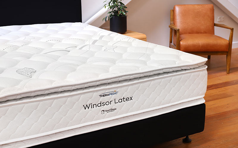 This medium-firm mattress features the Innergy alternating coil design that reduces motion transfer while improving lumbar support. This exclusive coil design eliminates sleep-disturbing motion transfer & allows each spring to respond individually to create an exceptionally supportive & comfortable sleep surface Patented HourGlass Back Support by Therapedic provides up to 18% more support to the lumbar region TheraFoam Encasement – Improves stability while increasing the usable sleep surface, eliminating roll together and increased edge support Wool blend pillow-top with foam comfort layers to provide additional pressure relief Flip this two-sided mattress for long-lasting comfort & support Mattress depth: 335mm Dimensions: This is a double-sided mattress and you can alternate between flipping and rotating it. After you first purchase this mattress, it should be should be flipped or rotated, on average, every fortnight. Once you’ve owned the mattress for a few months, it should be flipped or rotated every 3-6 months. This can help maintain more settlement between mattress layers, and will also help you maintain the conditions of your mattress warranty. Pictured on a black Upholstered Bed Base.